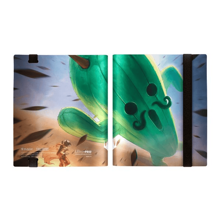 Carpeta PRO-Binder de 4 bolsillos para Magic: The Gathering—FINAL FANTASY con vibrante portada a todo arte de Jumbo Cactuar y páginas de almacenamiento de cartas en material texturizado negro con cierre de correa elástica a juego. Sus bolsillos con carga lateral y el material de baja fricción ayudan a mantener las cartas en su lugar. Permite guardar de forma segura hasta 160 cartas de tamaño estándar en hojas libres de ácido y sin PVC.